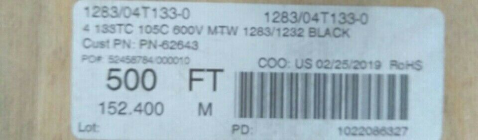 NEW 1283/04T133-0 4 133TC 105C 600V MTW 1283/1232 BLACK
