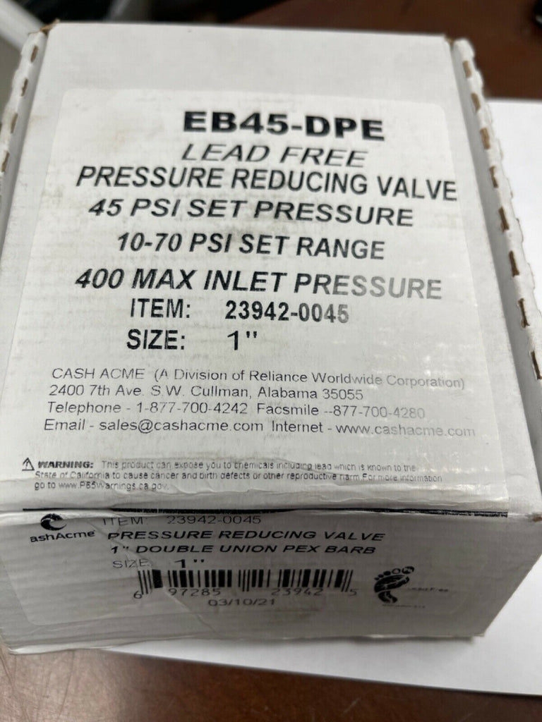NEW ACME EB45-DPE LEAD FREE PRESSURE REDUCING VAVE 45PSI SET PRESSURE