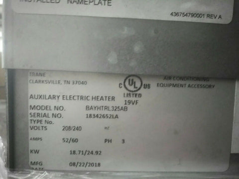 NEW AUXILLARY ELECTRIC HEATER 18.71.K.W. 208/240 VOLTAGE . Shipped with Standard Shipping.