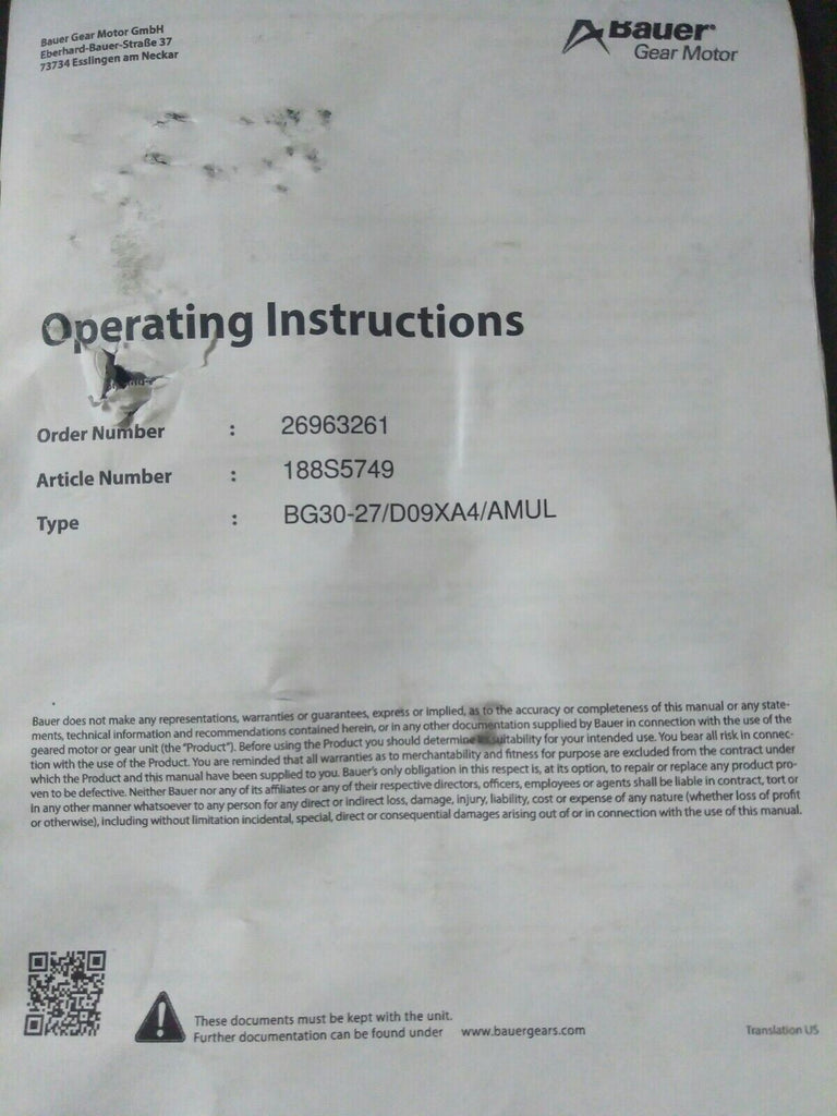 NEW Bauer BG30-27/D09XA4/AMUL Motor with gearNEW Bauer BG30-27/D09XA4/AMUL Motor with gear