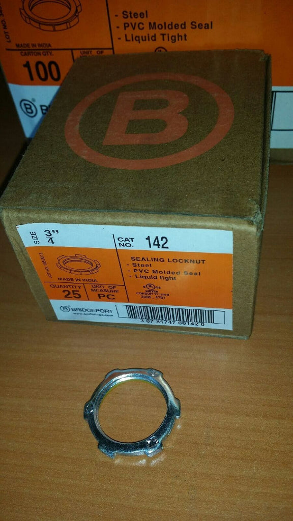 NEW Bridgeport 142 3/4" Steel Sealing Locknut, liquid tight ( 25 pcs)