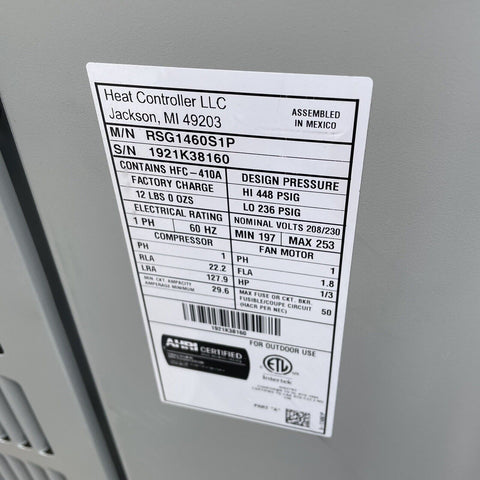 NEW COMFORT-AIRE RSG1460S1P Split System Air Conditioner, 5 ton, 60000 BtuH