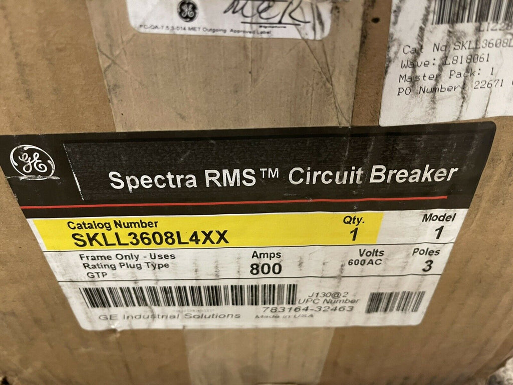 NEW GE SPECTRA RMS CIRCUIT BREAKER SKLL3608L4XX, Molded Case, 800A, 600V, 3Pole