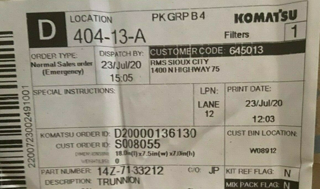 GENUINE OEM 14Y7113211 Trunnion for Komatsu  Part Applications: KOMATSU D65EX-12BOSS, KOMATSU D65PX-16, KOMATSU D65EX-15E0, KOMATSU D65PX-15, KOMATSU D65PX-15E0, KOMATSU D65PX-12, KOMATSU D65EX-15, KOMATSU D65EX-12