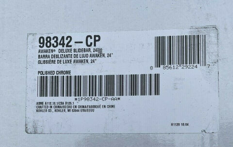NEW Kohler K-98342-CP Awaken 24 in. Deluxe Slide Bar in Polished Chrome