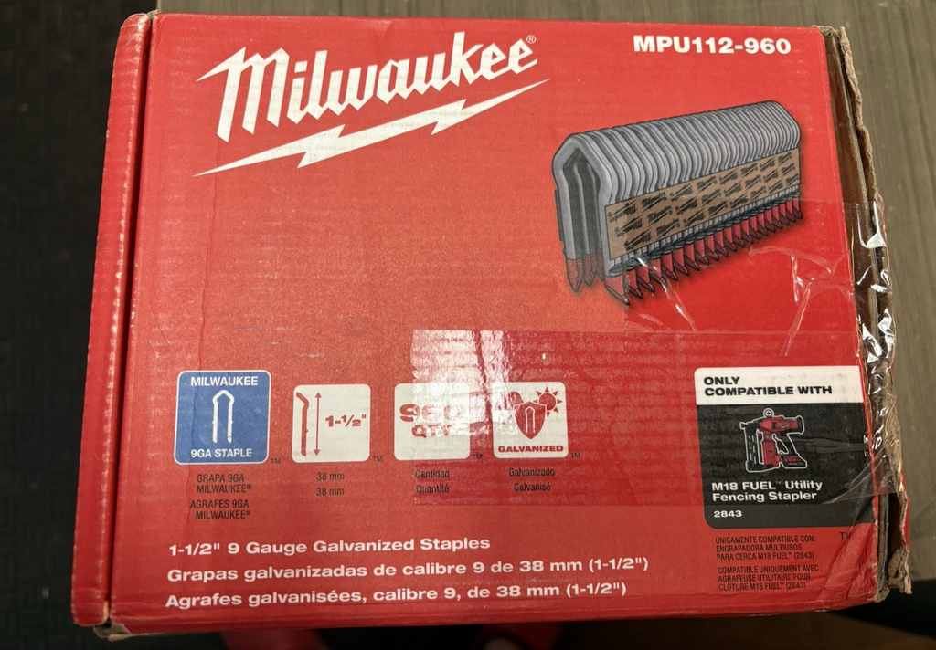 NEW Milwaukee MPU112-960, 9 Ga 3/4" x 1 1/2"  Diamond Crown Staples (960 PK)