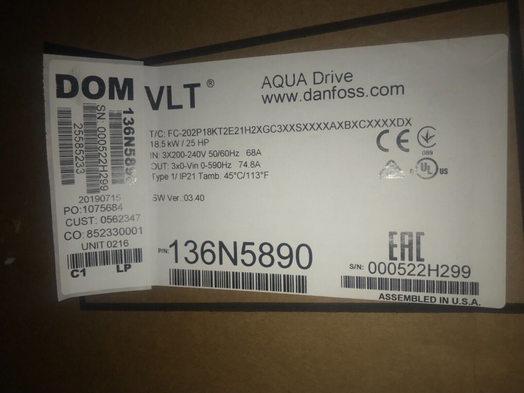 NUEVO Danfoss VLT AQUA Unidad 136N5890 FC-202P18KT2E21H2XGC3 18.5KW 240V 25 HP