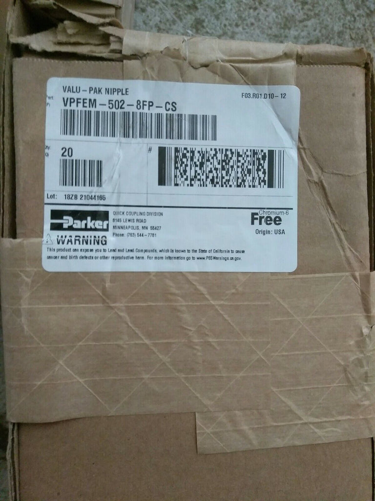 Parker Non-Spill, Flush Face Quick Couplings, Connect Under Pressure Nipple, Hyd BOX OF 20