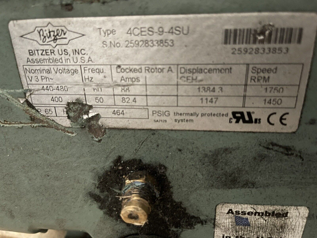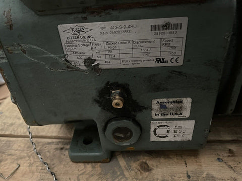 (USADO) COMPRESOR DE REFRIGERACION BITZER 4CES-9-4SU, 480V, 60Hz, 1750 RPM, 65HP(Usado) BITZER Refrigeración Compresor 4CES-9-4SU, 480V, 60Hz, 1750 RPM, 65HP